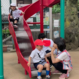 こいのぼりが非常すべり台に引っかかってるのを見て。