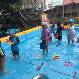 せいちゃん先生と準備して運動して、さあ!今日もプールだー♪