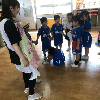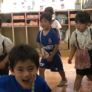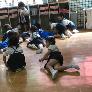 後ろの正面になりたくて、丸い輪を崩して、中にいる子の後ろに、他の子抜かして行っちゃう子がいたりして。