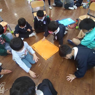 わくわくなかよしかい2022年11月25日読了時間: 1分11月21日(月)年長は小学校にいきました。秋の遊びを小学生が教えてくれて、一緒にあそびました。どんぐりこま、カップにどんぐり投げ入れゲーム秋に落ちてる木の枝で迷路を作ったり。小学校に行くと楽しいことあるよ、というメッセージが伝わってきました。読み聞かせもありました。劇はまた次回見せてくれるそうです。小学校生活をちょっとだけ覗くことが出来ました。お見送り…「またねー」小学生が盛り上げてくれました。