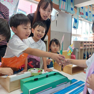年中参観日三ツ沢幼稚園2023年10月30日読了時間: 1分10月30日(月)参観日は最初にお店エプロン作るところからスタート。おみせやさんごっこが始まると男の子の元気な声で活気ある市場みたいです。女の子たちがおみせやさんになると、かわいい声で「いらっしゃいませー!」というのでメイドカフェみたいにおしゃれです。嬉しそうに買ったものを見てる子もいて、楽しい1日でした。