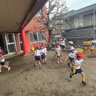 外でたくさん遊びたいので年長リレーが始まりました。