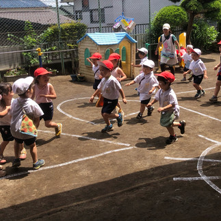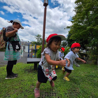 星☆ハート♡amamicha2024年6月4日読了時間: 1分更新日:2024年6月11日6月4日(火)年少さん先生がハート!って言ったら、ハートのかたちにみんなでおひっこし。☆に集まります。急いで走ります。 なれてきたら、先生が遅い子を捕まえます。捕まりたい子、捕まりたくない子反応さまざま。 勝ち残った3人です。こちらは捕まっちゃった子達です。年中さん、慰霊塔へのお散歩です。うさぎぐみさんのお散歩です。