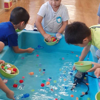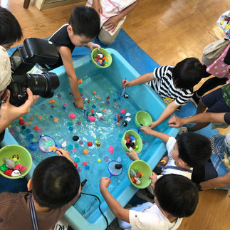 おまつり三ツ沢幼稚園2023年8月26日読了時間: 1分8月25日(金)年中、年少、うさぎ組は先生と一緒にお店をまわりました。コインを出して、魚釣りや金魚すくい、くじ引き、的あてなどをしました。年長はお店をぐるっとみんなで回って、どうぞ!の合図で、すきなお店に自分でいきました。楽しかったーとみんな。「くじ引きで好きなのがあたったー。」と興奮した声で教えてくれました。