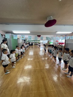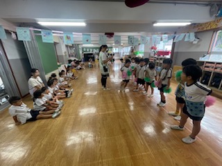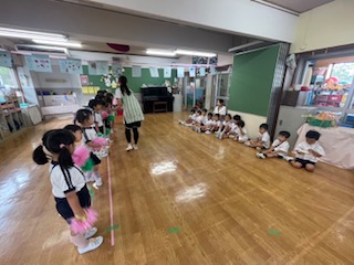 ねこたち三ツ沢幼稚園2024年9月25日読了時間: 1分9月25日(水)年中さんのダンスを年少さんが見てます。お客さんがいると、やる気出ますよね。年少さんの憧れるまなざしもいいです。年少さんの部屋に、ウサギぐみさんが、ねこになってやってきました。なりきってニャーニャー言ってます。年長さんは閉会式の練習です。かっこよく決めポーズ。